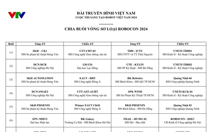 Lịch thi đấu vòng sơ tuyển của Robocon Việt Nam 2024 có thể xem tại đây.