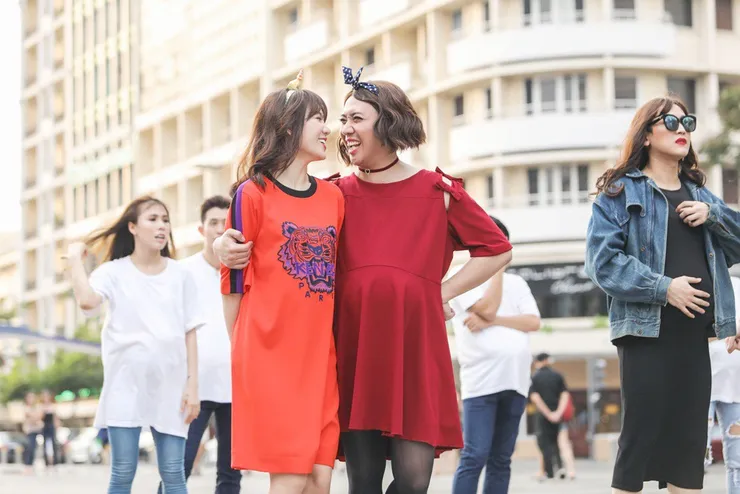 Không chỉ Hương Giang, Hari Won, Kỳ Duyên hóa thân thành bà bầu mà lần đầu tiên, Trấn Thành, Trường Giang và Hứa Vĩ Văn xuất hiện trước đám đông với hình ảnh giả nữ mang bầu. Dưới thời tiết TP.HCM nắng nóng và phải mang bụng bầu giả khá nặng nề nhưng các nghệ sĩ vẫn vô cùng hào hứng quay hình cho ca khúc Khi đàn ông mang bầu. Đây là một sáng tác từ cô nàng Shin Hồng Vịnh - học trò Hồ Hoài Anh trong Sing My Song mùa 2. Ca khúc được Ali Hoàng Dương và Hoàng Yến Chibi thể hiện.