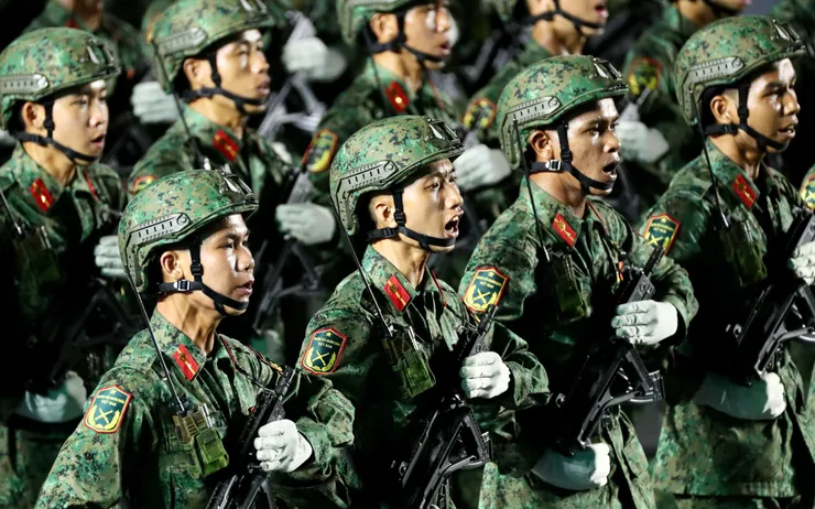 Tổng hợp luyện diễu binh, diễu hành vào tối 18/4. (Ảnh: Minh Nguyễn)