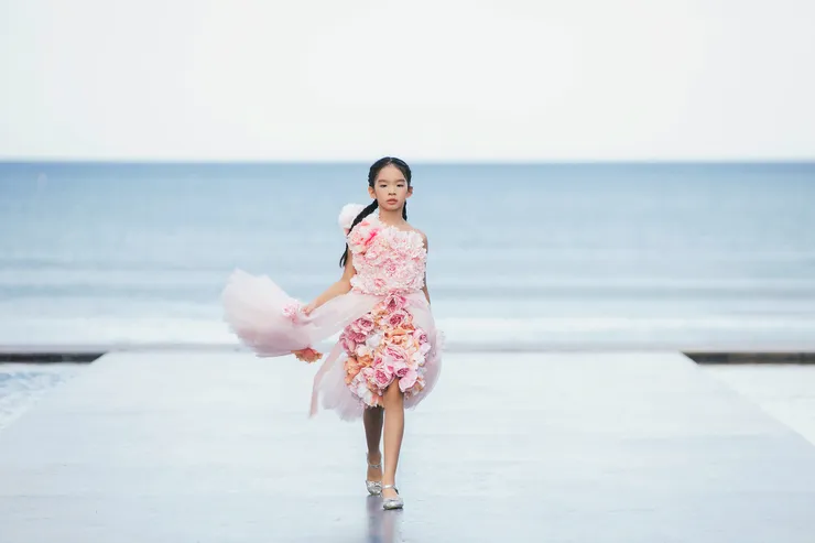 Mẫu nhí Lư Huệ San mở màn bộ sưu tập "Rainbow over the sea – Cầu vòng trên biển" của Thỏ Nhím và cặp mẫu nhí Khánh Vy – Thanh Hà giữ vai trò vedette. Được lấy cảm hứng từ các gam màu của cầu vồng xuất hiện trên biển. Những chiếc đầm được cắt xẻ một cách tinh tế từ kiểu dáng đến các họa tiết trên từng bộ trang phục.