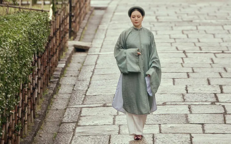 Nói về việc mặc áo dài truyền thống khi đến Kyoto, Đinh Hiền Anh nói cô mong muốn lan tỏa vẻ đẹp của trang phục Việt Nam đến bạn bè quốc tế. Khi dạo bước ở So-mon Gate, không ít du khách đã ngắm nhìn và khen ngợi bộ trang phục nữ ca sĩ khoác lên người. Bộ áo dài mang đậm nét cổ xưa có phần thân dài quá đầu gối với tay áo rộng được mặc cùng quần dài trắng và khăn vấn.