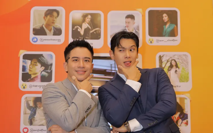 Nhà sáng tạo nội dung Dino Vũ (bên trái) và nhà sáng tạo nội dung Hàn Quốc Robin (bên phải) tại buổi họp báo ra mắt chương trình thực tế