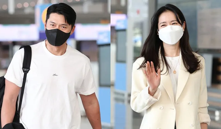 Son Ye Jin, người đến sảnh khởi hành sau Hyun Bin, nở nụ cười khi tạo dáng chụp ảnh báo chí và trả lời các câu hỏi của phóng viên. Trước đó, Hyun Bin đến trước, cũng có thái độ thân thiện, anh nở một nụ cười và vẫy tay chào các máy quay khi anh di chuyển qua họ.