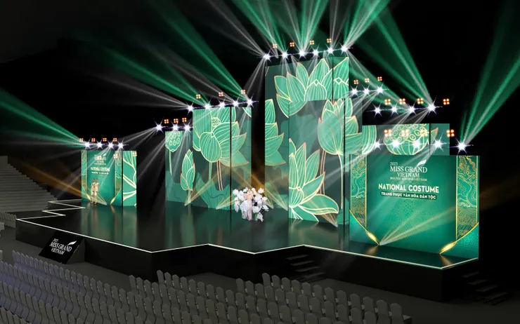 Thiết kế sân khấu đêm thi trang phục dân tộc của Miss Grand Vietnam - Hoa hậu Hoà bình Việt Nam 2023. Ảnh: BTC Miss Grand Vietnam 2023 cung cấp.