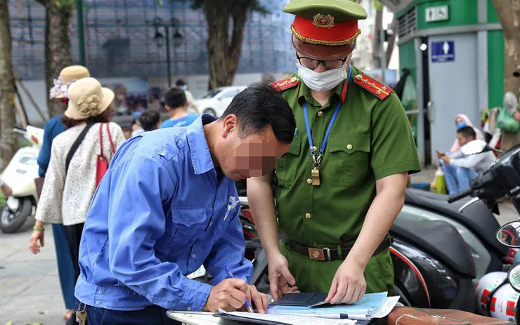 Lập biên bản xử phạt trường hợp vi phạm (Ảnh: Hà Nội mới)