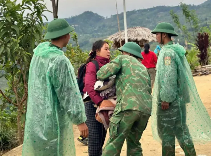 Bộ đội Biên phòng tỉnh Quảng Nam vận động người dân sơ tán khỏi khu vực có nguy cơ sạt lở. (Ảnh: QĐND)