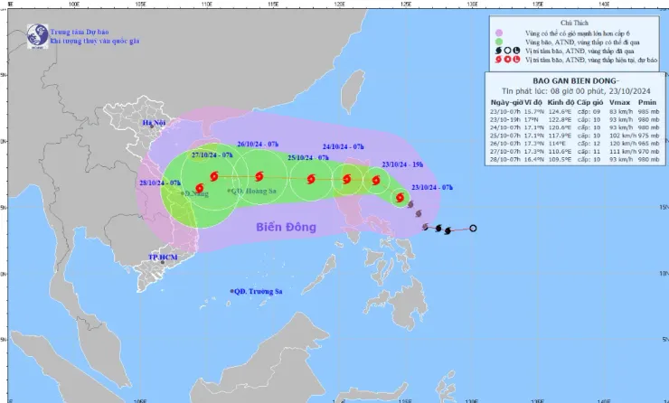 Theo Trung tâm Dự báo Khí tượng Thủy văn Quốc gia, hồi 7 giờ ngày 23/10, cơn bão Trami (tiếng Việt là Trà Mi), có vị trí tâm ở vào khoảng 15,7 độ Vĩ Bắc; 124,6 độ Kinh Đông, trên vùng biển phía Đông đảo Luzon (Philippines).