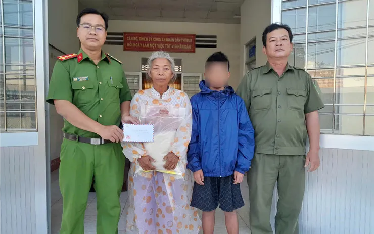 Thấy hoàn cảnh của em Phú khó khăn, Công an xã đã tặng gạo và chút kinh phí hỗ trợ cho gia đình em P.