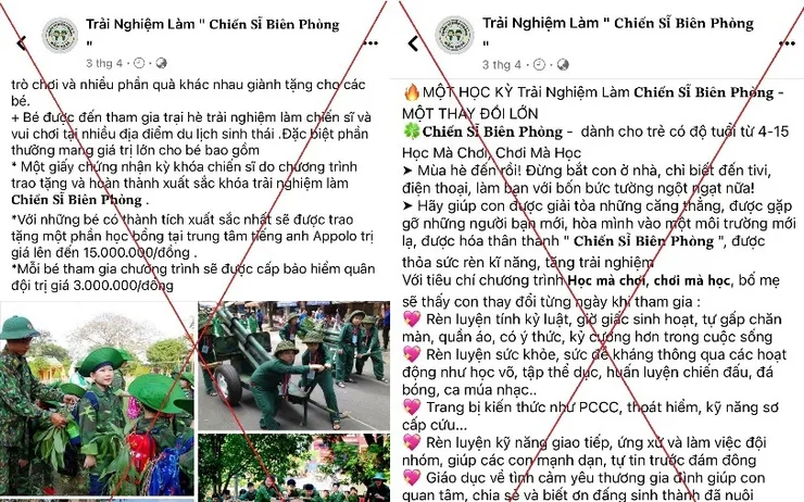 Chị T (trú tại Thanh Xuân, Hà Nội) có lên mạng xã hội Facebook để tìm cho con khóa học hè để "rèn kỹ năng, tăng trải nghiệm" cho con. Vì muốn con được rèn luyện tính kỷ luật, giờ giấc sinh hoạt, rèn luyện sức khỏe và trang bị các kiến thức như phòng cháy chữa cháy, thoát hiểm, kỹ năng sơ cấp cứu,… Qua tìm hiểu, chị T. đã liên hệ với trang Facebook "Trải nghiệm làm chiến sĩ Biên phòng" và đăng ký cho con.