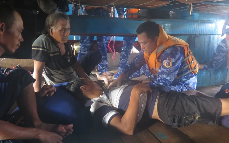 Tàu Cảnh sát biển 8002 hỗ trợ đưa ngư dân về đất liền để điều trị