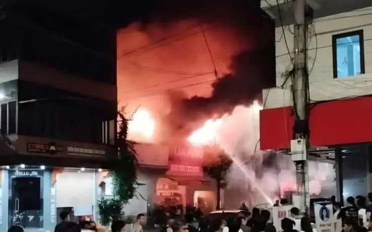 Khoảng 2h sáng 26/5, một vụ cháy lớn xảy ra tại dãy cửa hàng phụ tùng xe máy điện ở tổ dân phố My Điền 2, phường Nếnh, thị xã Việt Yên, tỉnh Bắc Giang.