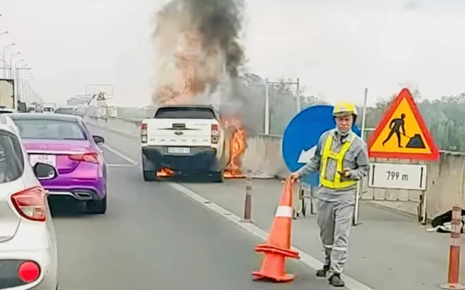 Khoảng 12 giờ 40 phút ngày 2/1, xe ô tô bán tải mang BKS 82C-025.XX lưu thông trên cao tốc TP Hồ Chí Minh - Long Thành - Dầu Giây hướng đi Đồng Nai, khi đến Km8+300/PT thì bất ngờ thấy khói bốc lên từ đầu xe.