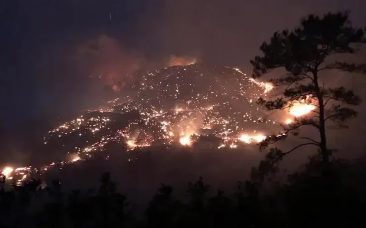 Cả quả đồi cháy rực ở Bình Liêu tối 12/4. (Ảnh: PLO)