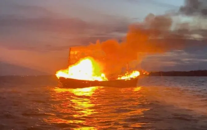 Vụ hỏa hoạn đã làm tàu cá bị thiêu rụi hoàn toàn (Ảnh: Báo Biên phòng)