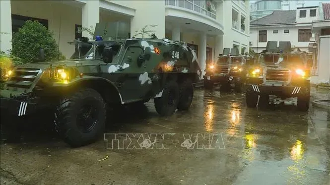 Ban Chỉ huy Quân sự thành phố Đà Nẵng điều động 4 xe thiết giáp sẵn sàng tham gia cứu hộ, cứu nạn.