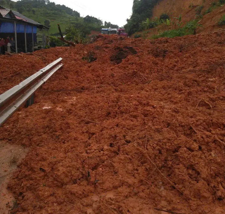 Quốc lộ 12 cũng sạt lở làm gián đoạn giao thông 2 chiều