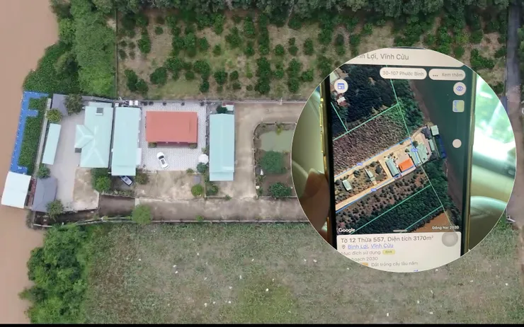 Qua kiểm tra trên hệ thống quản lý địa chính của xã Bình Lợi, toàn bộ phần đất dành cho trồng cây lâu năm được "phủ" bằng những công trình kiên cố, vi phạm quy hoạch, chiếm luôn 1 đoạn bờ kè sông Đồng Nai để xây cầu cảng riêng.