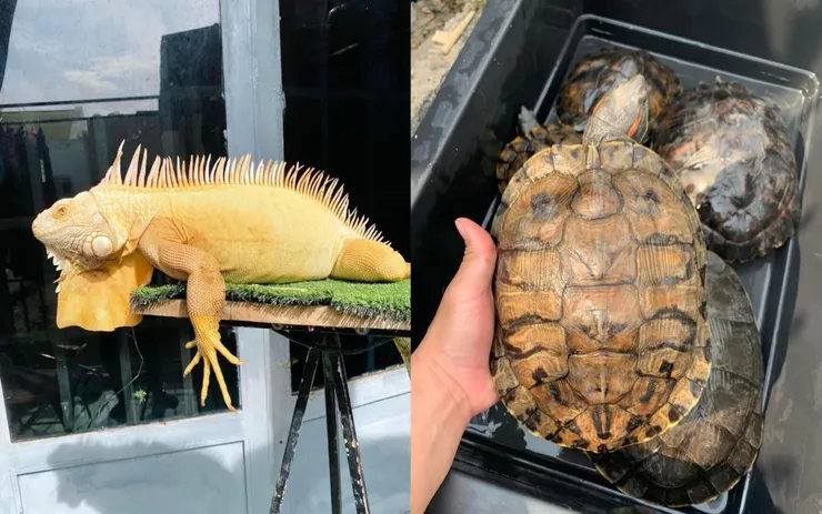 Rồng đất nam mỹ và rùa tai đỏ là hai trong số những loài ngoại lai thường bị buôn bán ở Việt Nam (Ảnh: ENV)