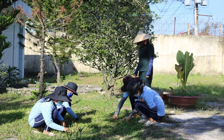 Các học viên nữ cai nghiện tham gia lao động ở Cơ sở Tư vấn và điều trị nghiện ma túy (thị xã Phú Mỹ)