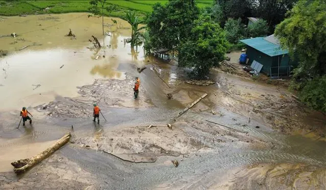 Đến ngày 17/9, lực lượng chức năng cùng người dân vẫn đang nỗ lực tìm kiếm 14 nạn nhân đang bị mất tích. (Ảnh: TTXVN)