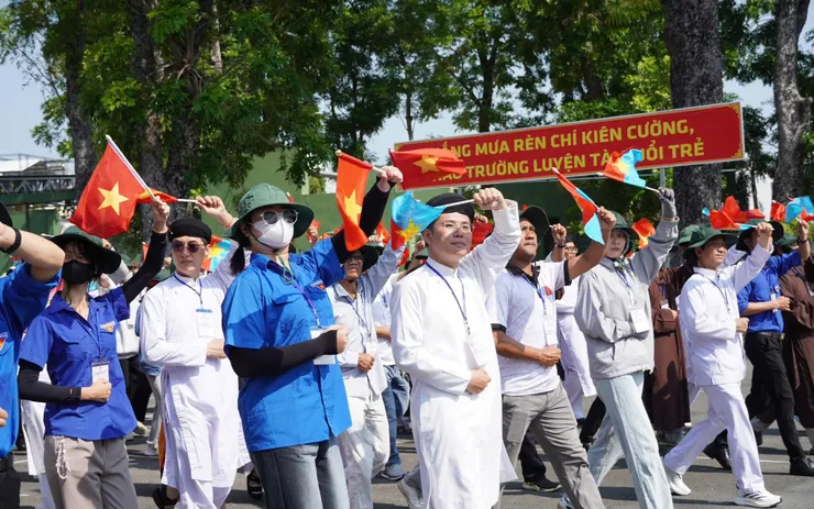 Khối diễu hành của Mặt trận Tổ quốc bao gồm đại diện các dân tộc, tôn giáo, thanh niên đang tích cực tham gia huấn luyện để chuẩn bị tốt nhất cho lễ kỷ niệm 50 năm Giải phóng miền Nam thống nhất đất nước.