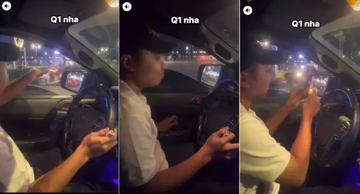 Theo nội dung đoạn clip, nam thanh niên vừa điều khiển ô tô vừa có hành vi bật lửa, đốt pháo rồi ném xuống đường. Sau khi thả pháo xuống đường khoảng vài giây, một tiếng nổ lớn vang lên. Vụ việc trên xảy ra trên đoạn đường Tôn Đức Thắng (quận 1) hướng về khu vực cầu Khánh Hội (quận 4), tuyến đường thường xuyên có mật độ giao thông cao.