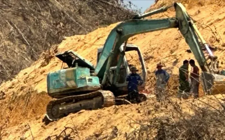Thời điểm này, ông T. đang điều khiển xe cuốc san ủi mặt bằng phía dưới chân đồi để trồng sầu riêng thì bất ngờ cán trúng ông M.