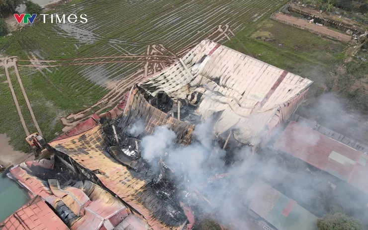 Theo ghi nhận của phóng viên Thời báo VTV, vào khoảng 12h30 ngày 5/2, tại Công ty sản xuất giấy Ánh Dương (khu Doãn Thượng, phường Xuân Lâm, thị xã Thuận Thành, tỉnh Bắc Ninh), khói vẫn bốc cao.