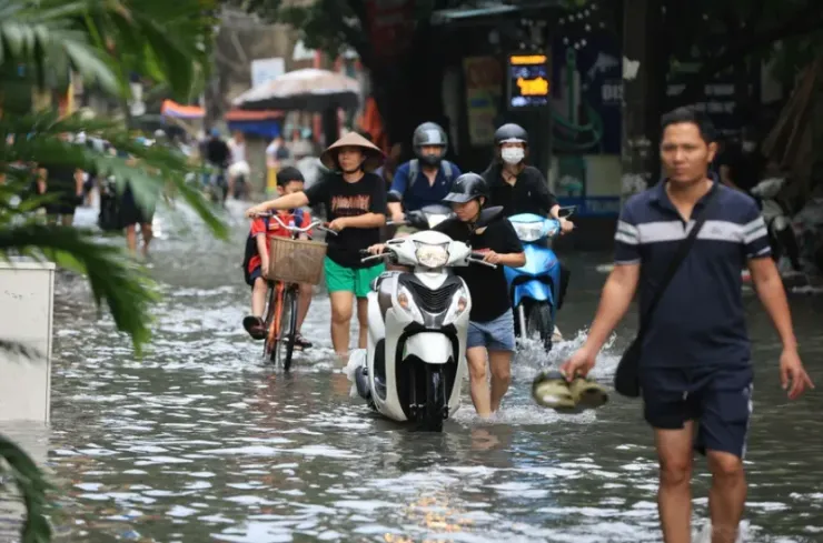 Từ sáng sớm, nhiều khu vực ở Hà Nội chìm trong biển nước. Thời điểm 6h30, một số điểm ngập úng trên các tuyến phố như: Thái Hà, Quan Nhân, Bùi Xương Trạch, Vương Thừa Vũ, Nguyễn Tuân, Cự Lộc, Nguyễn Khuyến, ngã 3 Điện Biên Phủ - Nguyễn Tri Phương, Liên Trì - Nguyễn Gia Thiều, Phùng Hưng, Phan Bội Châu - Lý Thường Kiệt, Thụy Khuê, Cao Bá Quát...