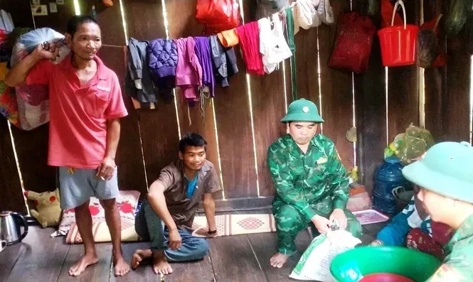 Cán bộ, chiến sĩ Đồn Biên phòng phối hợp với chính quyền địa phương vận động và hỗ trợ di dời hộ dân đến nơi an toàn. (Ảnh: TTXVN)