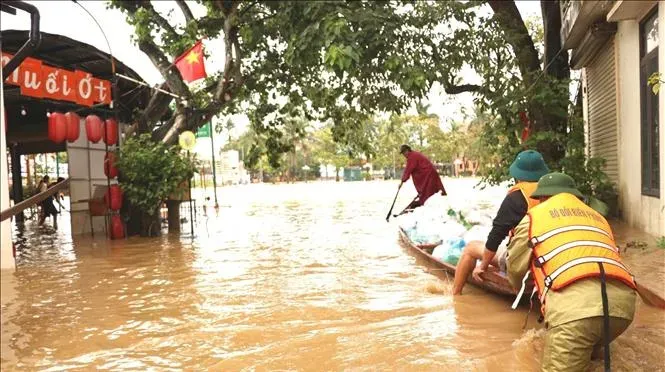 Lực lượng Bộ đội Biên phòng Quảng Bình luôn bám sát địa bàn, kịp thời giúp đỡ bà con nhân dân trong khó khăn, hoạn nạn. Ảnh: TTXVN