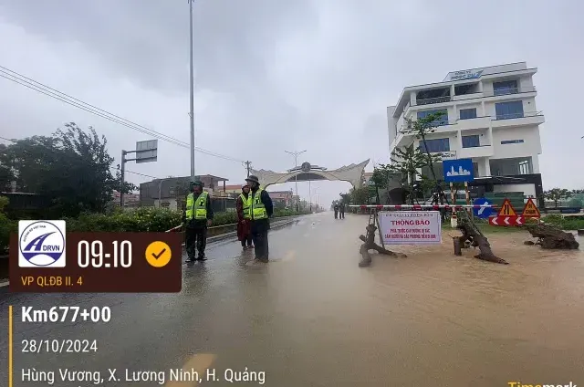 Theo thông tin từ Văn phòng Quản lý đường bộ II.4 cho biết, do ảnh hưởng của bão số 6, tính đến 05 giờ 45 phút ngày 28/9, trên các tuyến Quốc lộ 1A đoạn qua địa phận huyện Lệ Thủy, huyện Quảng Ninh, tỉnh Quảng Bình bị ngập, các phương tiện không thể lưu thông.