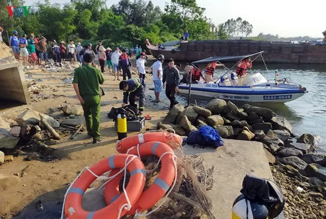 Hiện trường sau vụ tai nạn lật thuyền ở Quảng Nam hôm 8/5. Ảnh: VOV