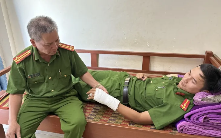 Thượng úy Trần Đức Tài bị thương khi truy bắt, ngăn chặn nhóm chém nhau.