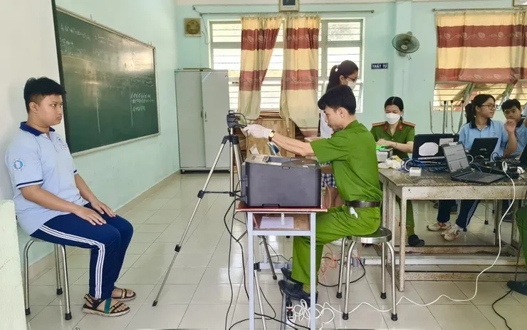 Công an TP Hồ Chí Minh đang thực hiện cao điểm cấp CCCD gắn chip cho học sinh. (Ảnh: PLO)