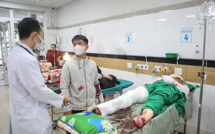 Bác sĩ Khoa Cấp cứu kiểm tra tình trạng các nạn nhân. Ảnh: TTXVN