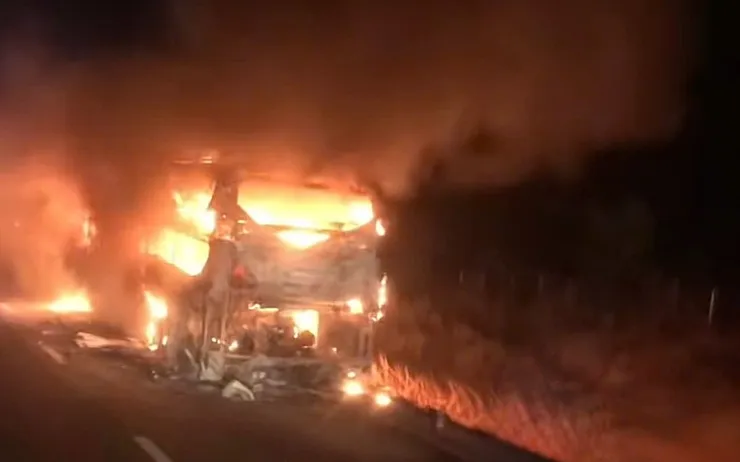 Do khói và lửa bao trùm, các phương tiện lưu thông qua khu vực phải di chuyển chậm ở làn sát dải phân cách cứng. Toàn bộ hành khách được hỗ trợ đến trạm dừng nghỉ để đợi xe tăng cường.