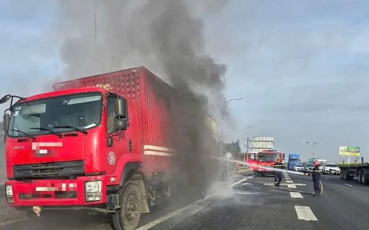 Khi đến đoạn qua xã Phước Thiền (huyện Nhơn Trạch), tài xế phát hiện khói và lửa bốc lên từ thùng xe nên nhanh chóng cho xe dừng lại và thoát khỏi cabin.